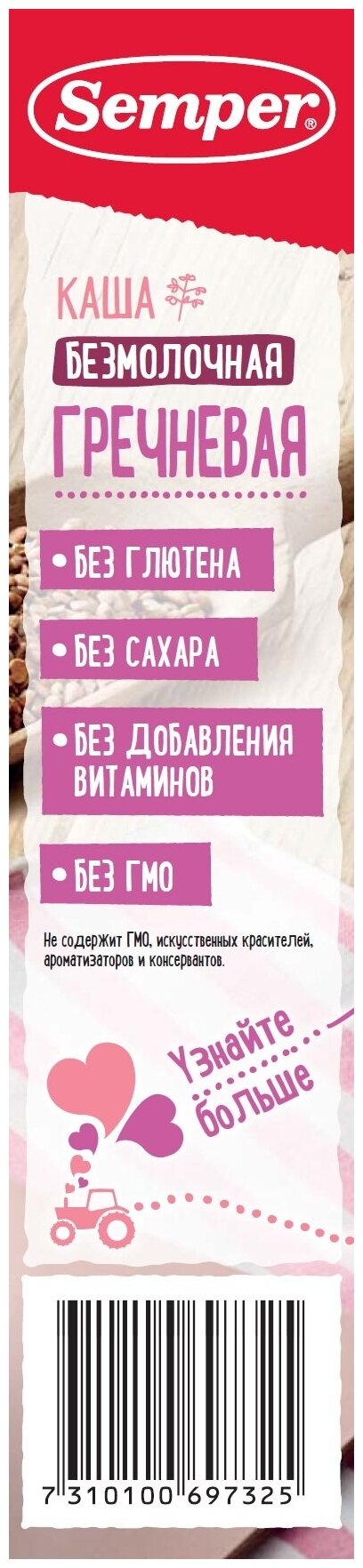 Каша безмолочная Semper гречневая с 4 мес 180 г информация: