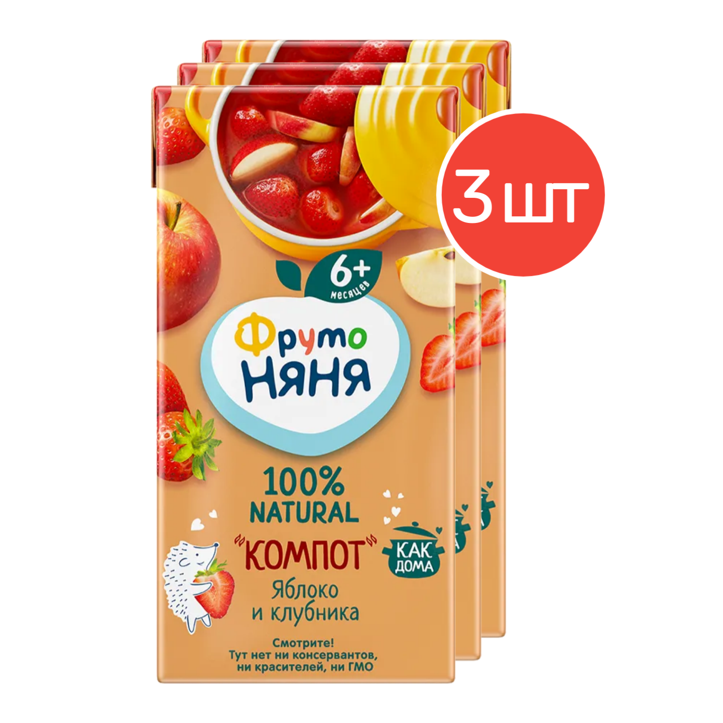Компот детский ФрутоНяня из яблок и клубники с 6 месяцев 0,2 л 3 шт информация: