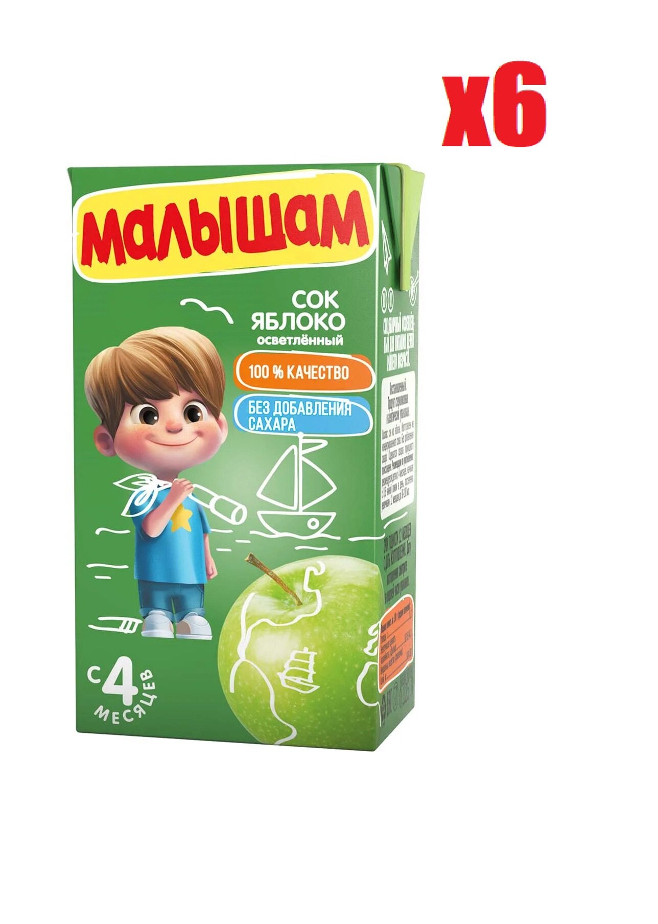 Сок " Малышам" Яблочный осветленный 0,125 мл, 6 шт информация: