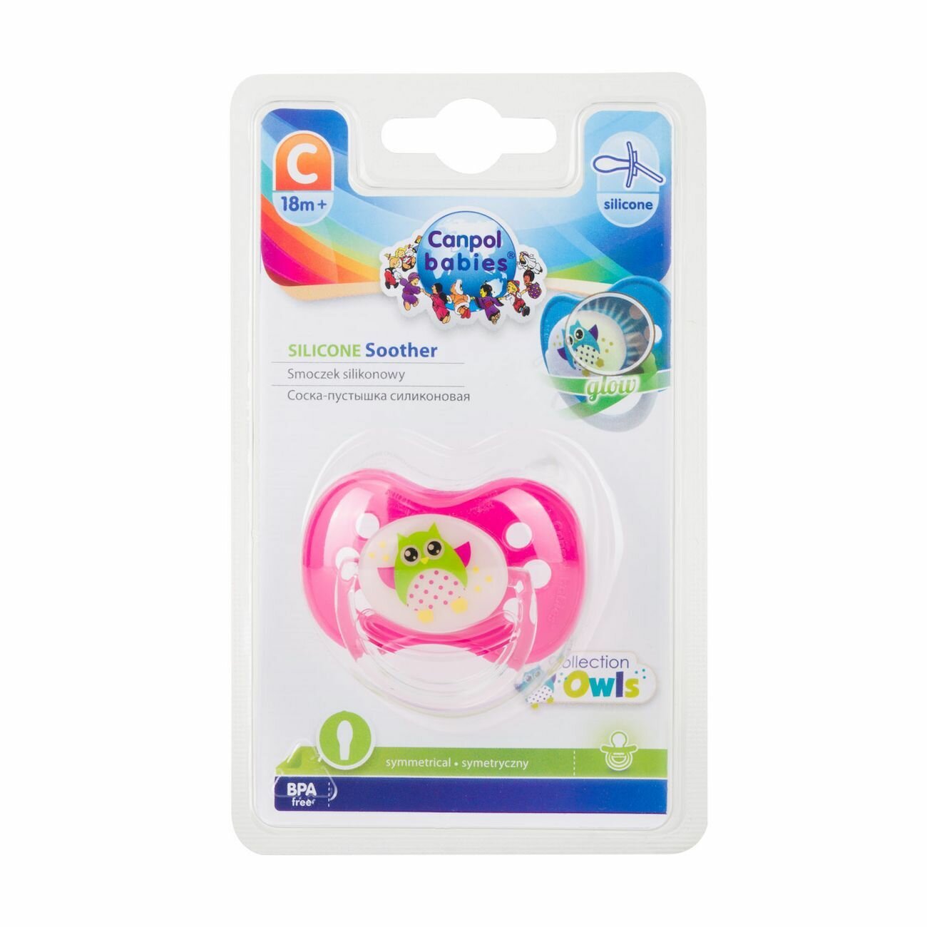 Пустышка Canpol Babies симметричная силиконовая, 18+ Owl, цвет: розовый информация: