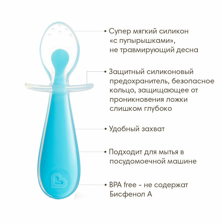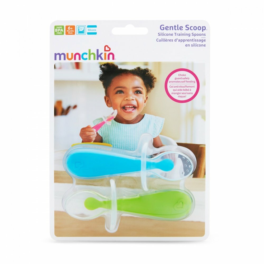 Отзывы на Munchkin ложки силиконовые обучающие с ограничителем Gentle Scoop™Голубой/Зеленый 2 шт. 6+