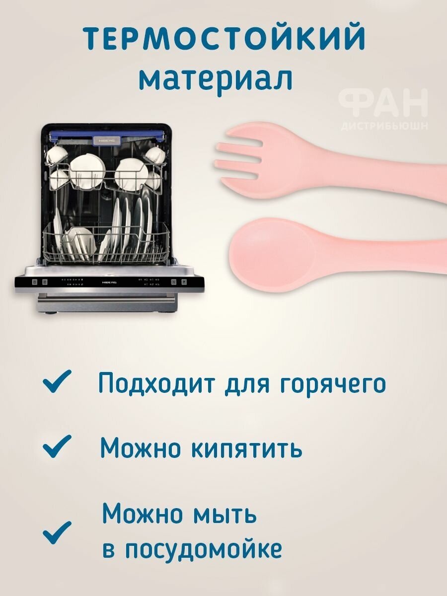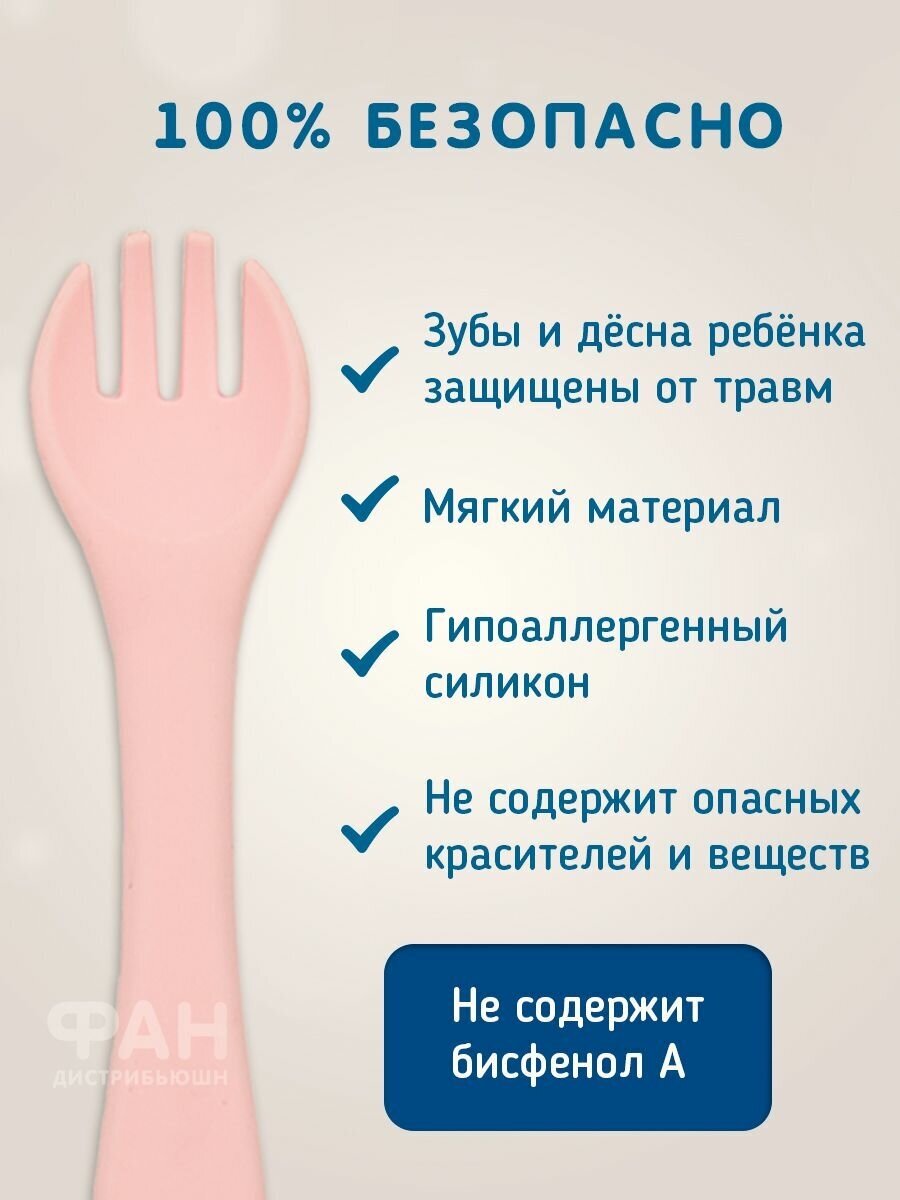 Силиконовая ложка и вилка детская для прикорма, детские приборы "Funtasy" (Розовый) информация: