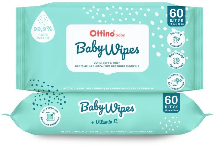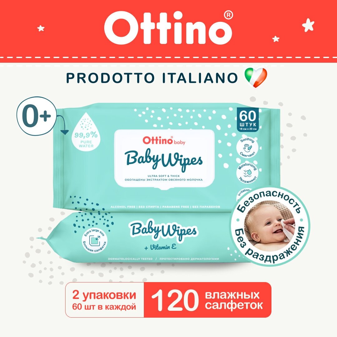 Влажные салфетки для детей OTTINO /оттино 120 шт, набор из 2 уп по 60 шт информация: