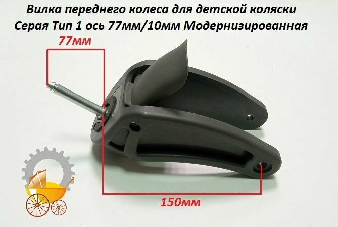 Вилка для детской коляски Тип 1 ось 77мм Модернизированная Серая информация: