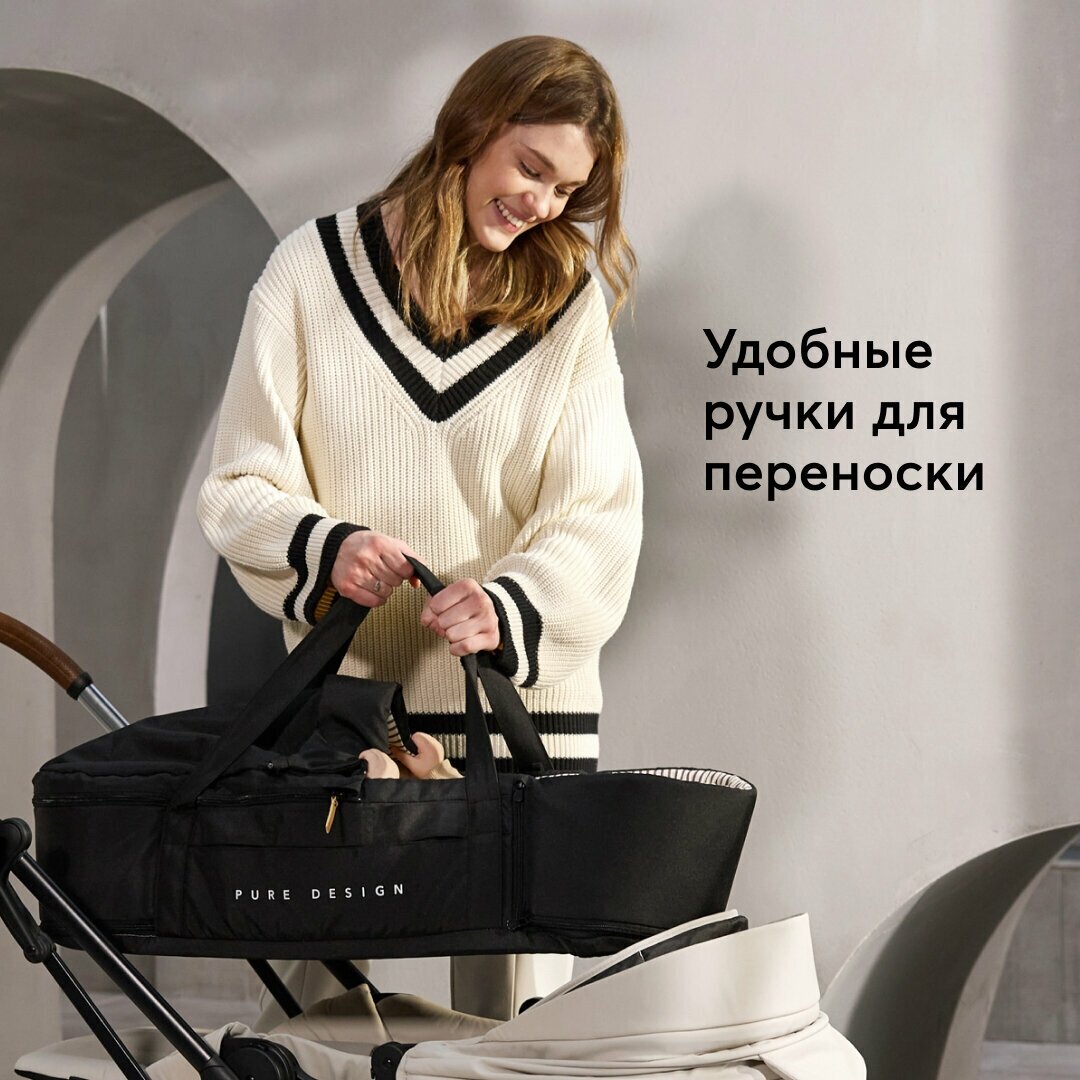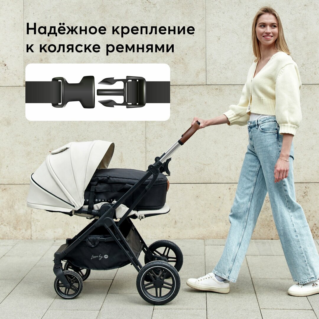 10 цен на 92023, Люлька-переноска / Люлька для коляски Happy Baby CARRY с карманами, крепления, черная, белая
