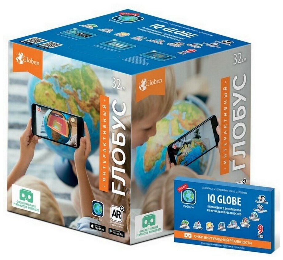 10 цен на Интерактивный глобус Земли физико-политический Globen 32 см., с LED-подсветкой + Развивающий атлас "Мир вокруг тебя" + VR очки