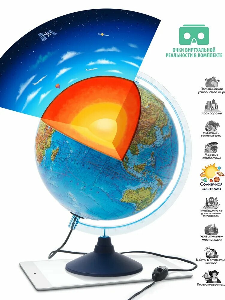 10 цен на Globen Интерактивный глобус Земли физический-политический диаметр 40 см., с LED-подсветкой + VR очки