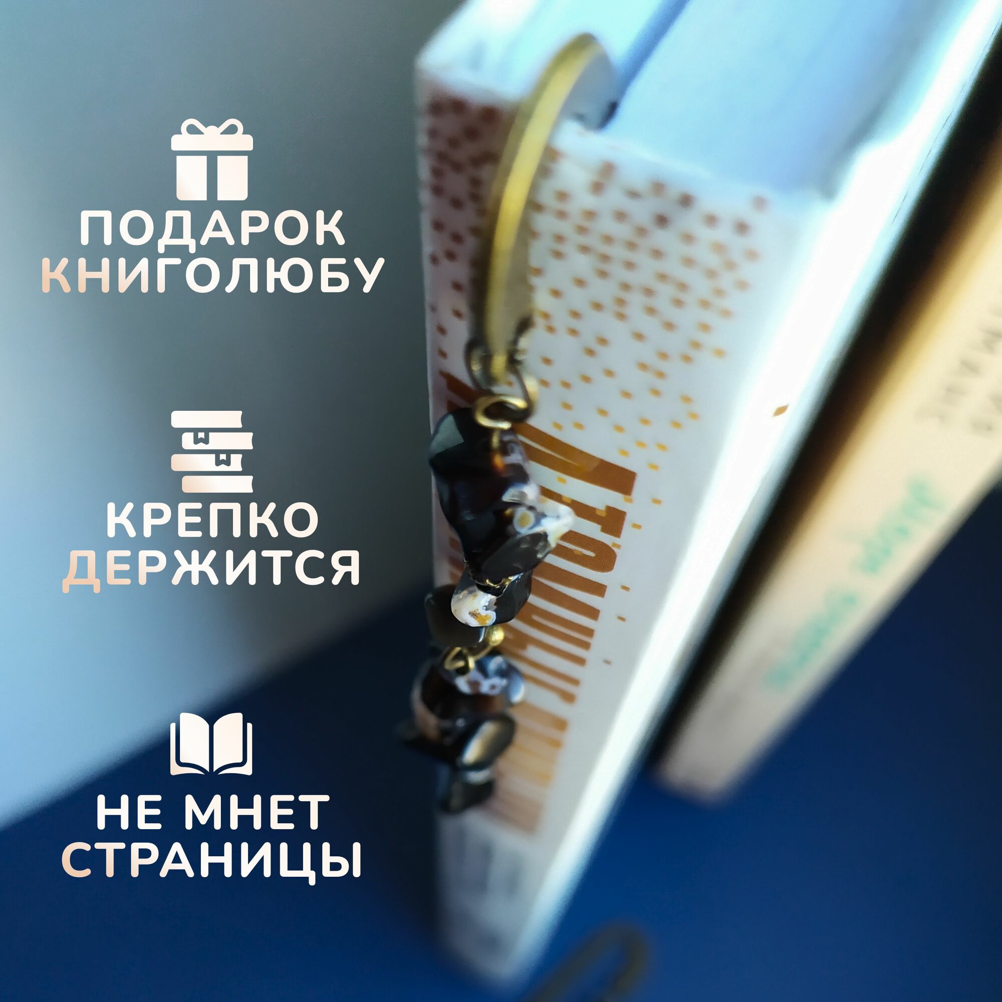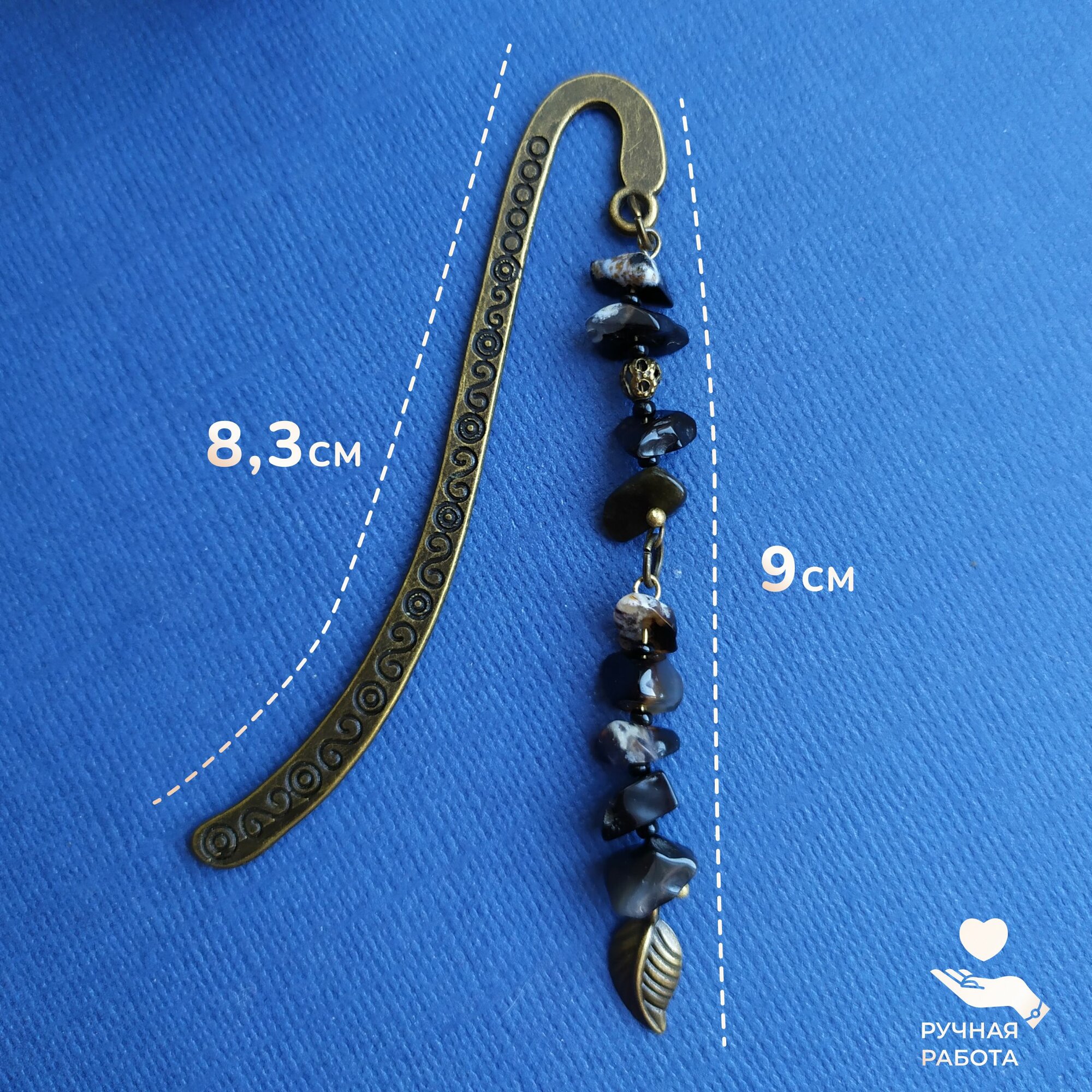 Закладка ручной работы металлическая с камнями и бусинами информация: