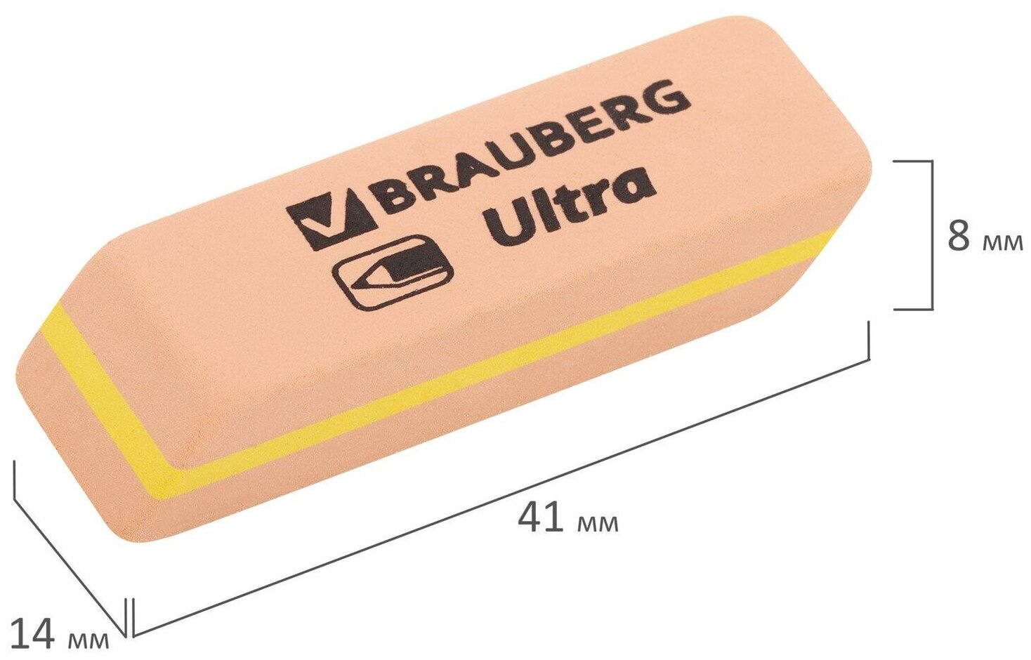Ластики BRAUBERG "Ultra" набор 6 шт., размер ластика 41х14х8 мм, оранжевые, натуральный каучук, 229601 информация: