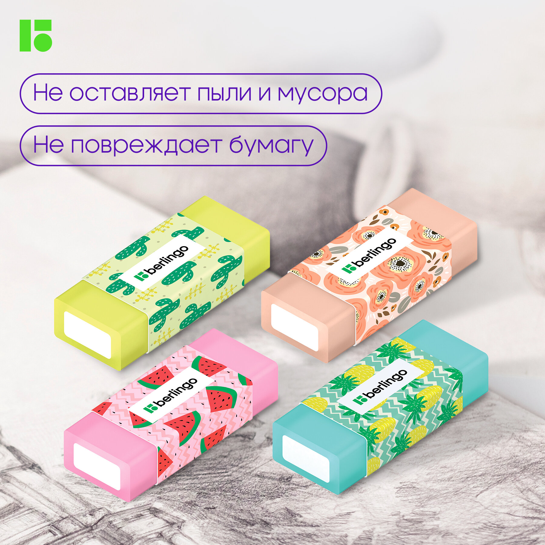 Отзывы на Ластик Berlingo Funline Fruits and Flowers, 4шт, прямоугольные, 50*20*11мм, блистер