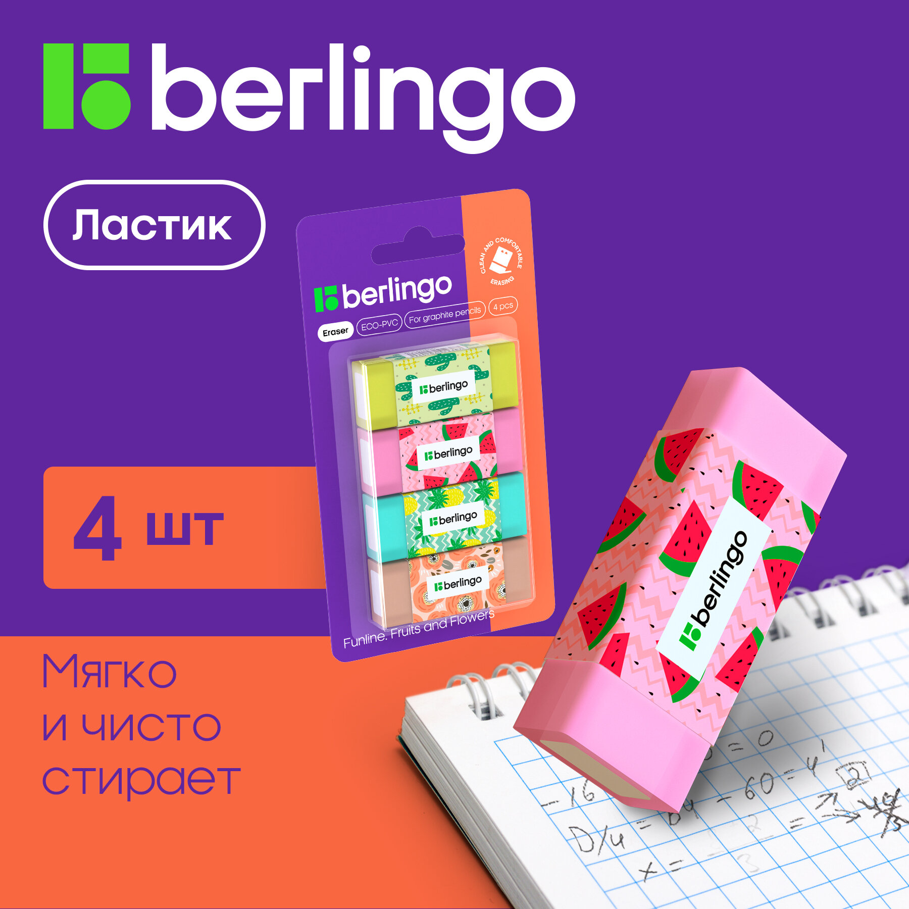 10 цен на Ластик Berlingo Funline Fruits and Flowers, 4шт, прямоугольные, 50*20*11мм, блистер