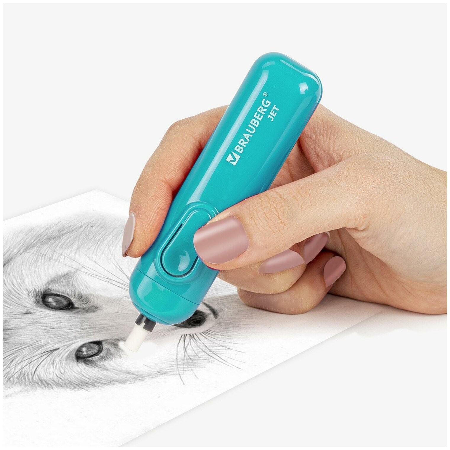 Ластик электрический BRAUBERG "JET", питание от 2 батареек ААА, 8 сменных ластиков, голубой, 229612 (цена за 1 ед. товара)