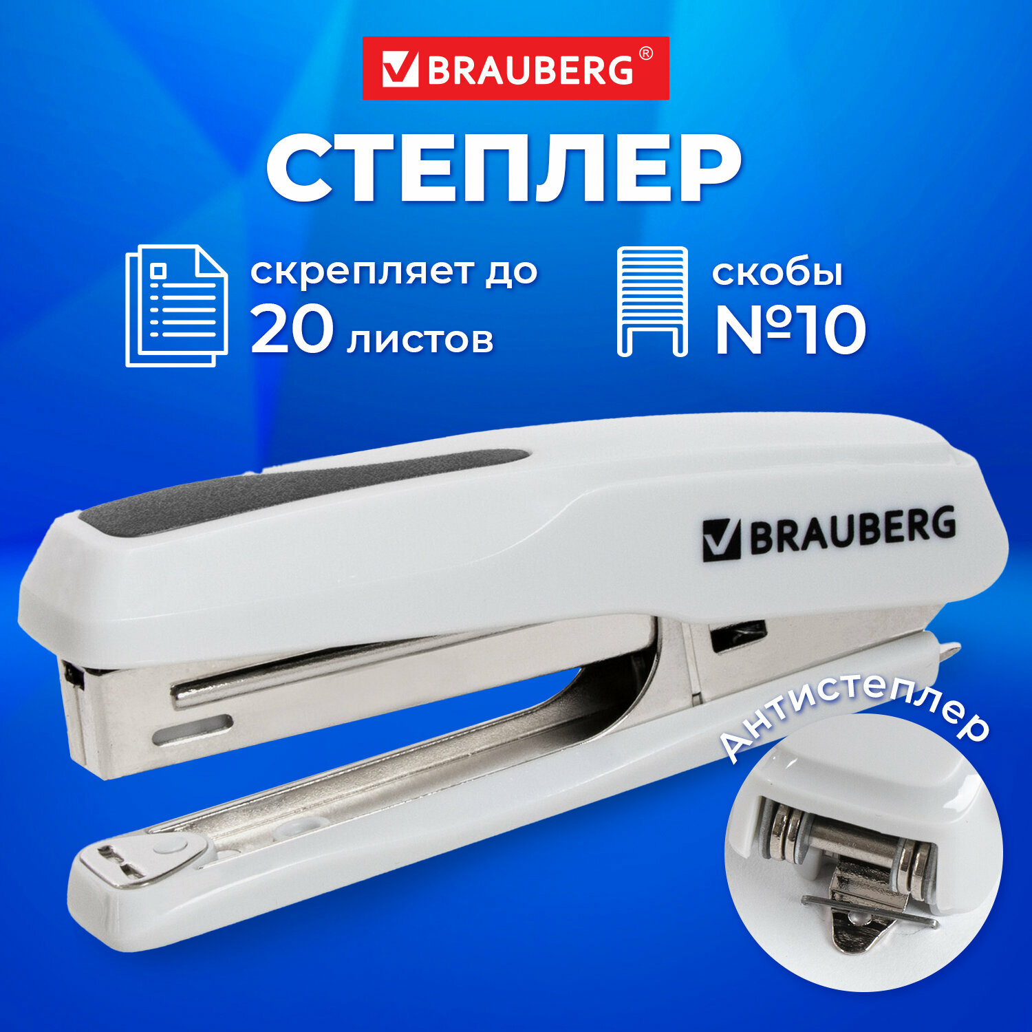 Степлер канцелярский для бумаги №10, до 20 листов, антистеплер, серый, Brauberg Extra, 229083 информация: