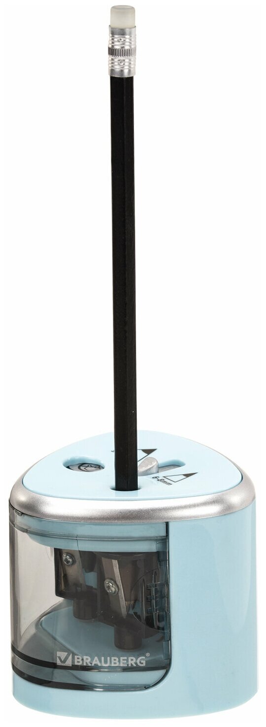 Точилка электрическая (электроточилка) для карандашей с контейнером для стружки Brauberg Dual (для 2 диаметров карандашей!), голубая