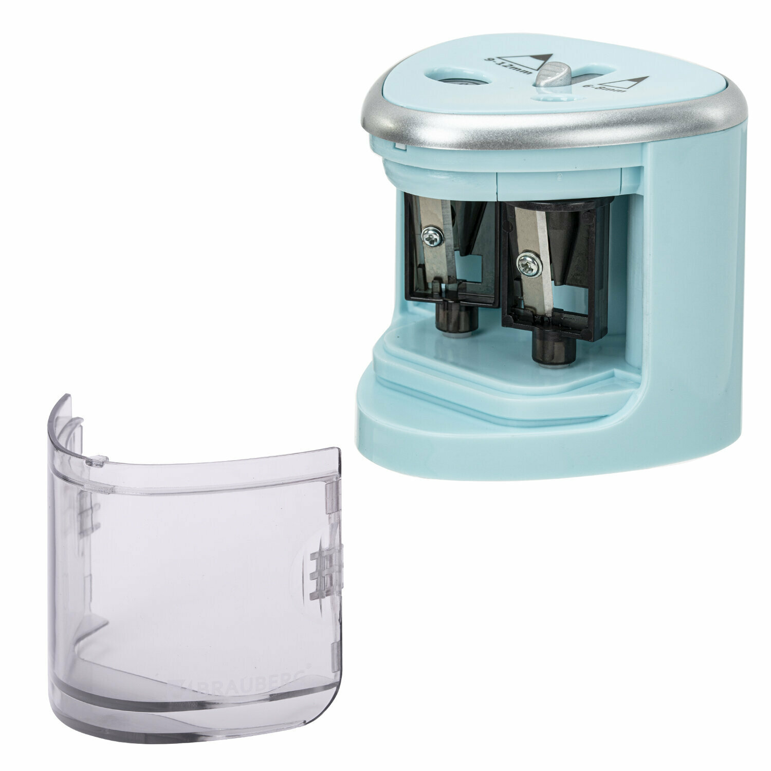 Точилка электрическая Brauberg Dual, для 2 диаметров карандашей, 4 батарейки АА, голубая (270578) информация: