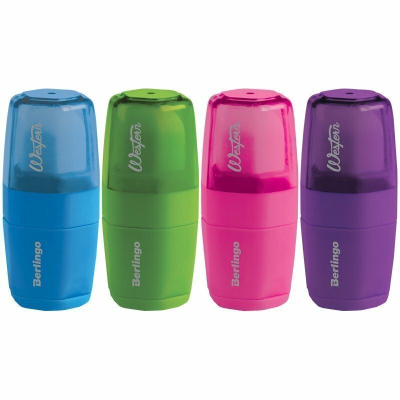 10 цен на Точилка пластиковая с ластиком Berlingo "Western", 1 отверстие, контейнер, ассорти