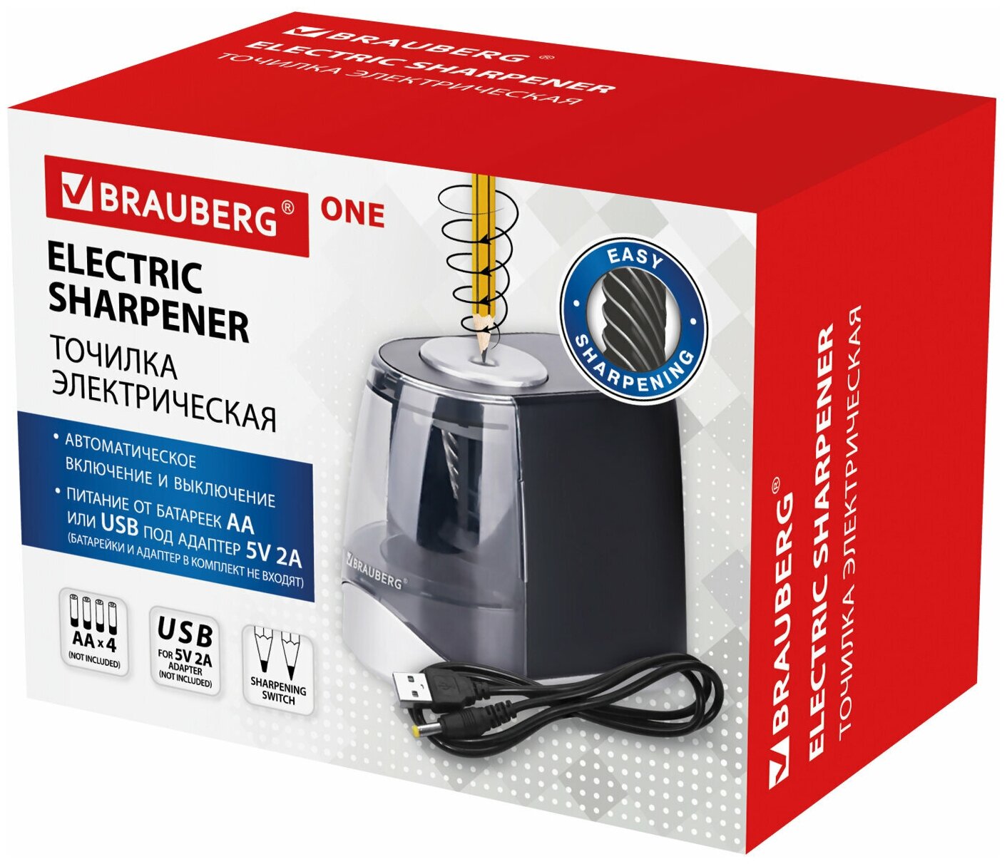 Точилка электрическая Brauberg One фреза с автостопом, 4 батарейки AA, USB, под адаптер (270577) информация: