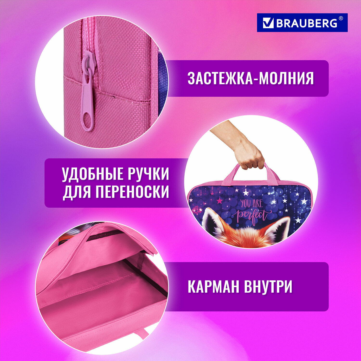 Папка на молнии с ручками Brauberg А4, 1 отделение, полиэстер, 80мм, Cute fox, 272176 информация: