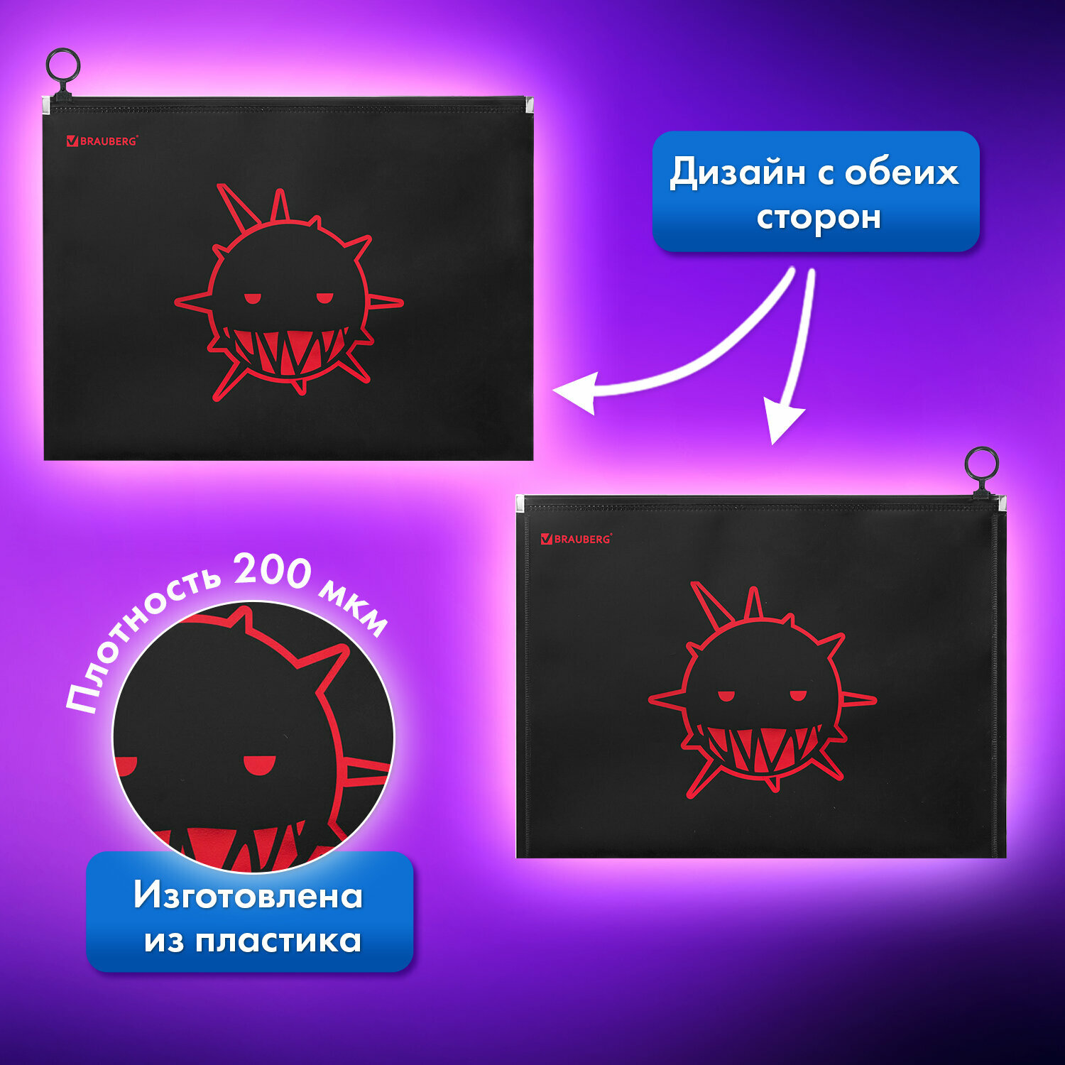 Папка для тетрадей Brauberg А4, 1 отделение, пластик, на zip-lock-молнии, Danger, 272105 информация: