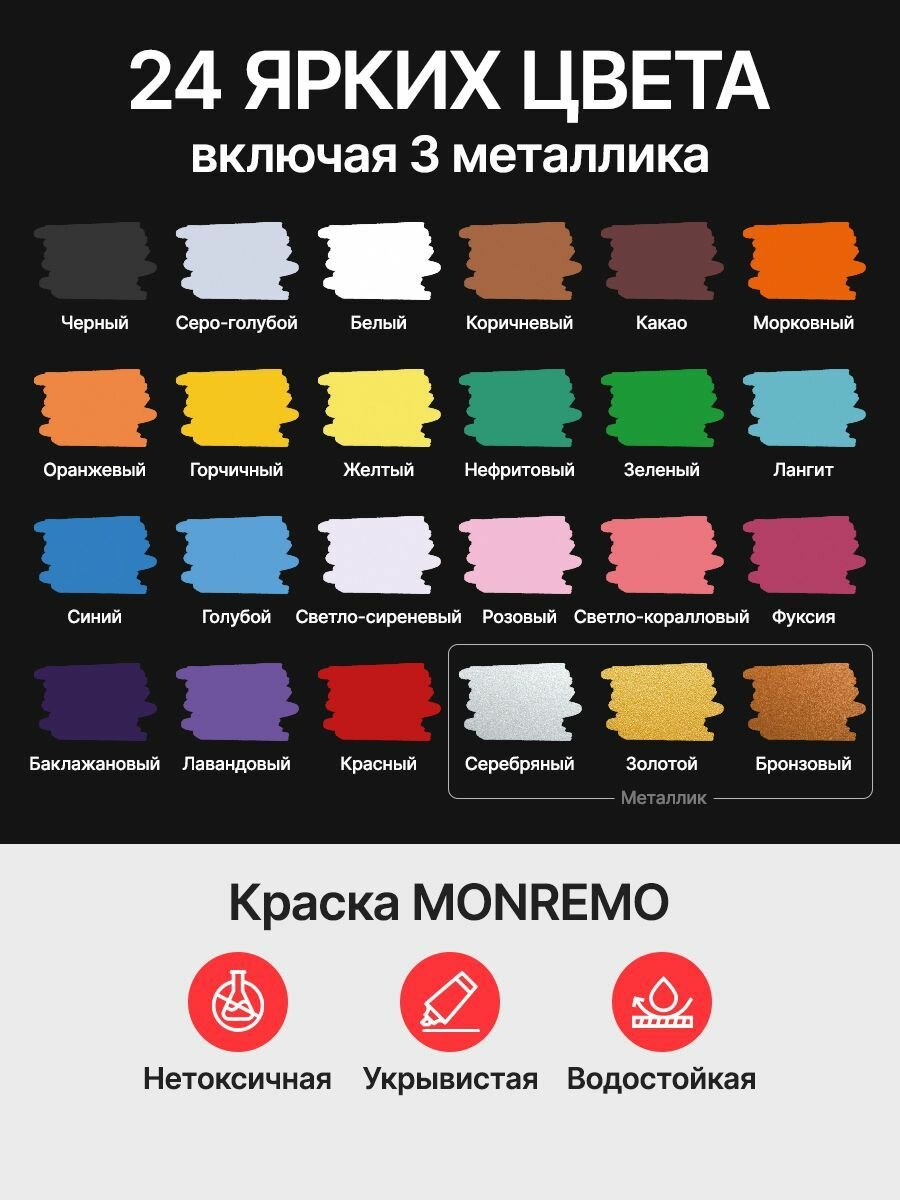 Акриловые маркеры водостойкие + 3 холста, 24 цвета информация:
