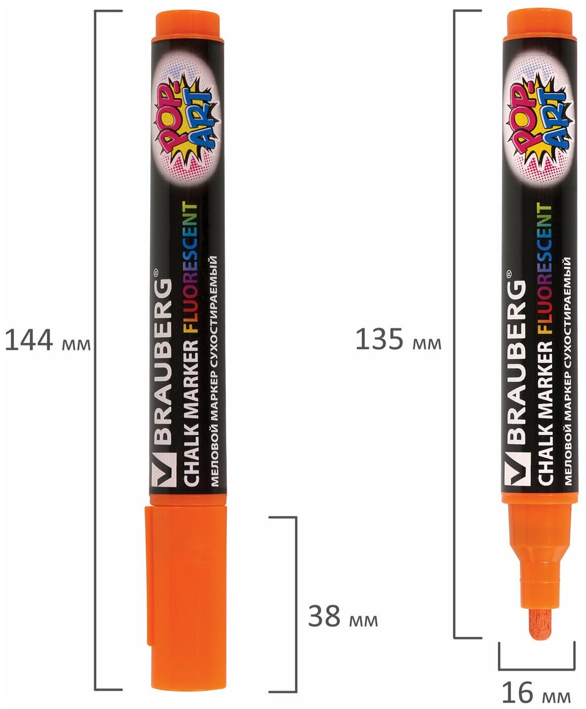 Маркеры / фломастеры меловые стираемые для доски и других поверхностей Pop-art Оранжевый, 5 мм, стираемый, для гладких поверхностей, Brauberg информация: