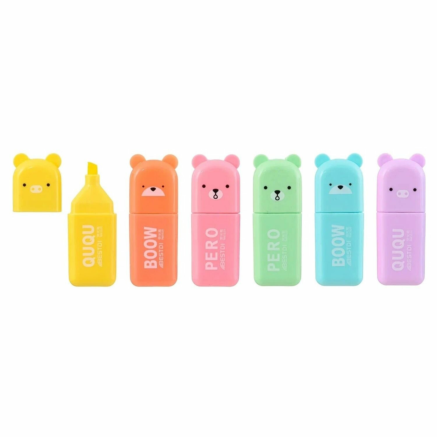10 цен на Набор мини текстовыделителей, 6 шт, шести цветов, серия "Мишка", текстмаркеры детские длиной 5.4 см, фломастеры хайлайтеры MC-Basir, 6 цветов