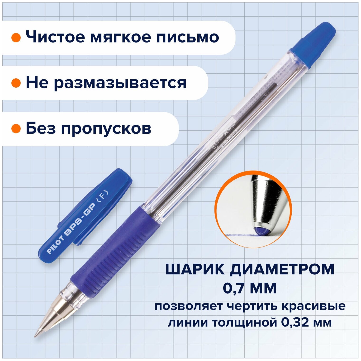 Ручка шариковая масляная с грипом PILOT "BPS-GP", синяя, корпус прозрачный, узел 0,5 мм, линия письма 0,18 мм, BPS-GP-EF, BPS-GP-ЕF