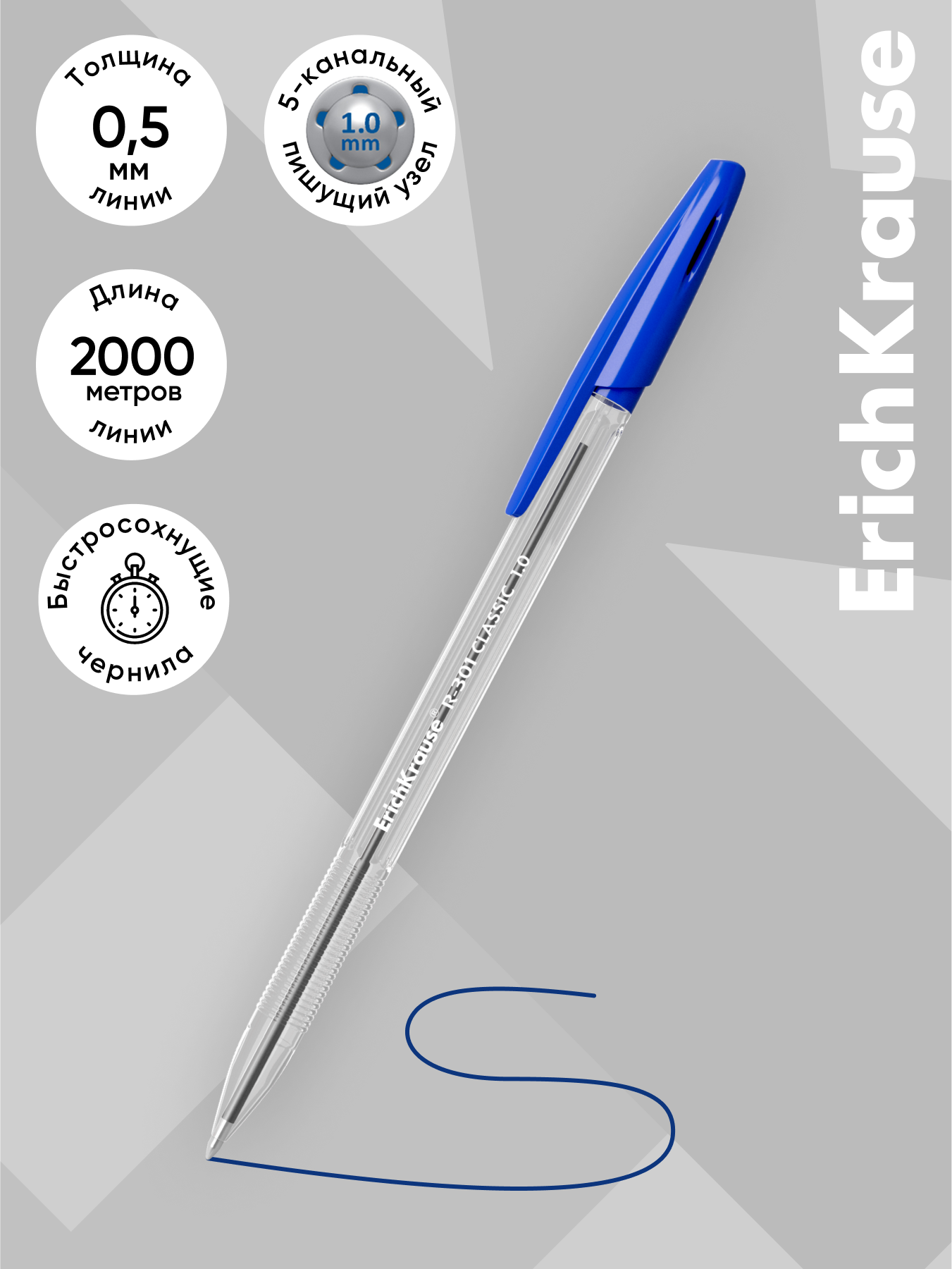 Отзывы на Ручка шариковая ErichKrause® R-301 Classic Stick 1.0, цвет чернил синий (в пакете по 8 шт.)