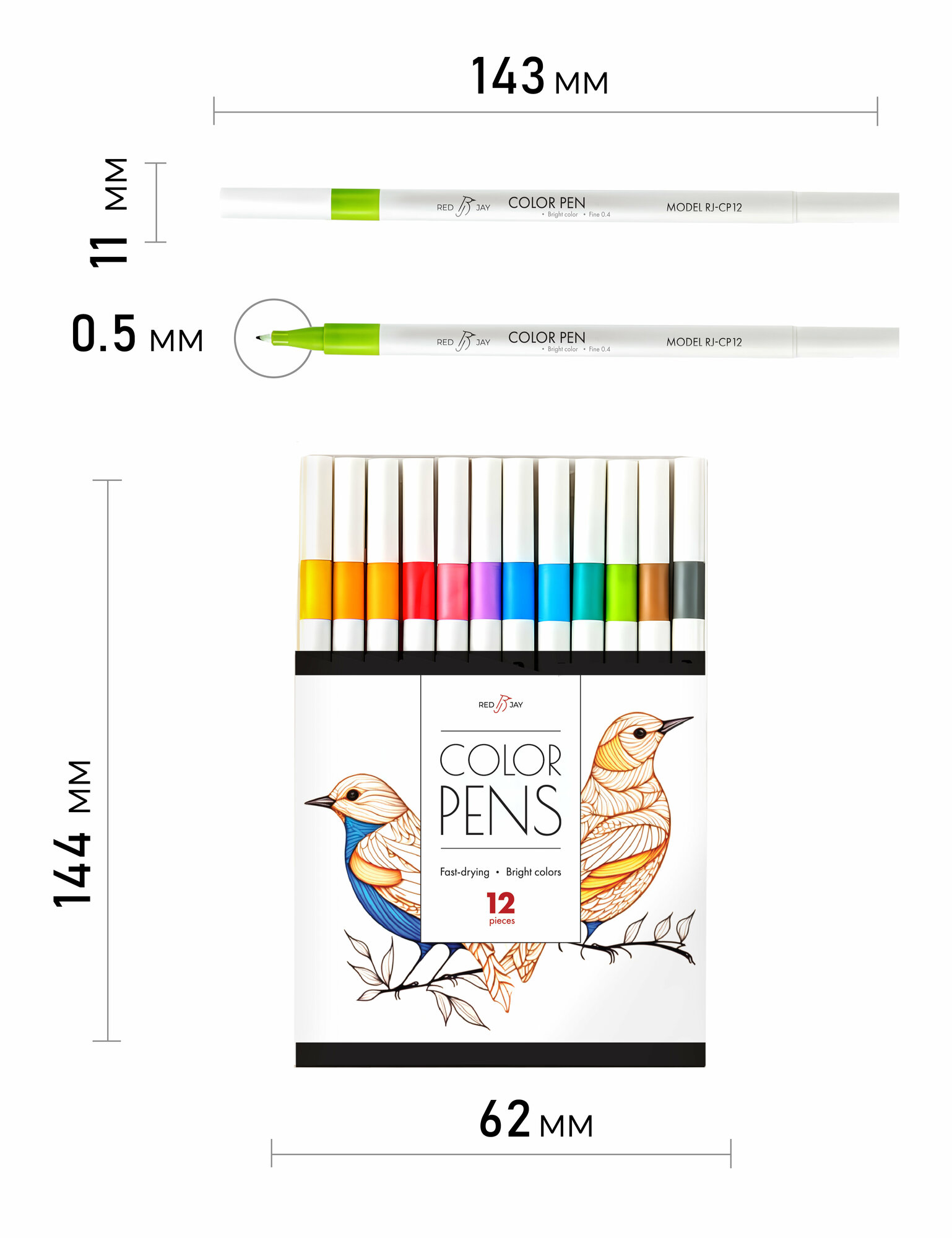 Цветные линеры для скетчинга и рисования ꟾ Цветные капиллярные ручки | 12 штук информация: