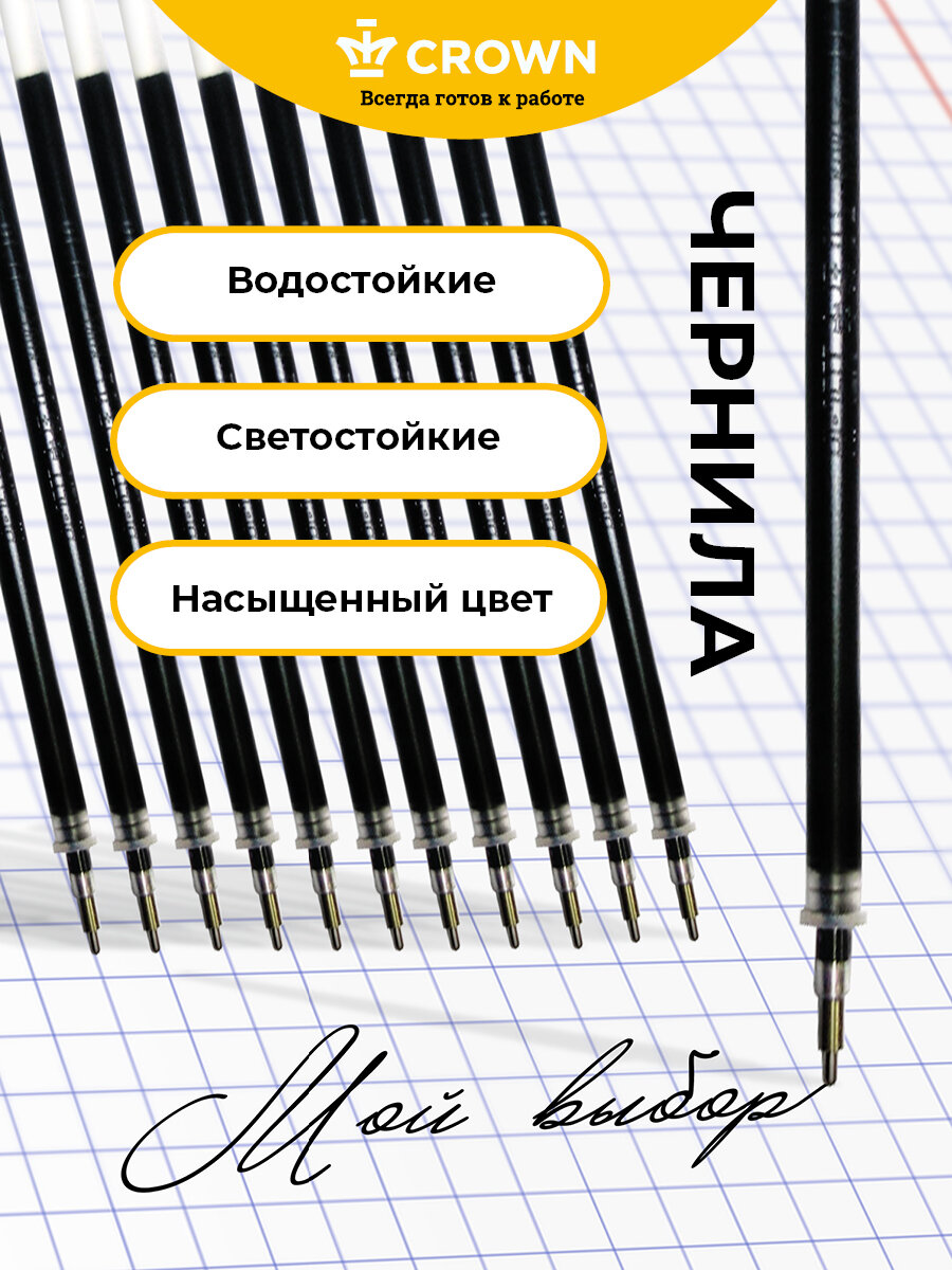 Отзывы на Стержень гелевый Crown "Hi-Jell Needle" черный, 138мм, 0,7мм, игольчатый, 12 шт. в упаковке