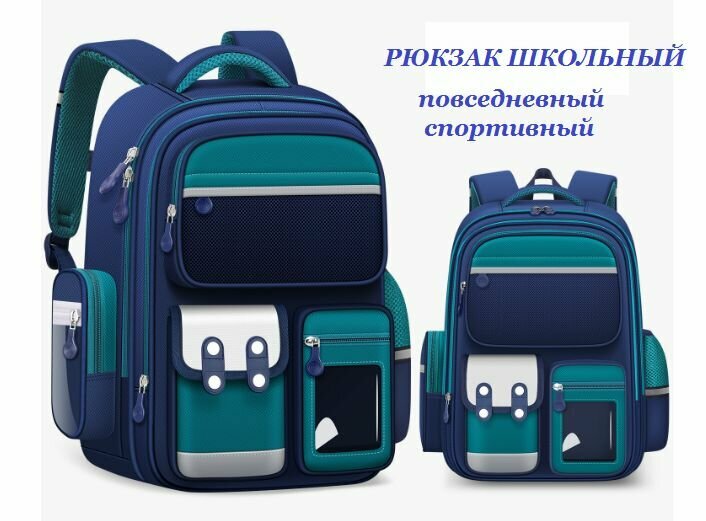 Рюкзак школьный ранец ортопедический с карманами зеленый информация: