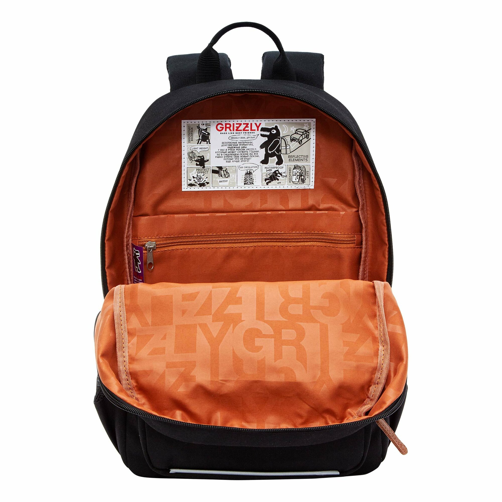 Рюкзак школьный GRIZZLY RB-455-1/2 черный - оранжевый 3 639 ₽