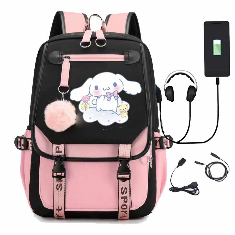 Рюкзак Синнаморолл с пушистым брелком и USB выходом розовый информация: