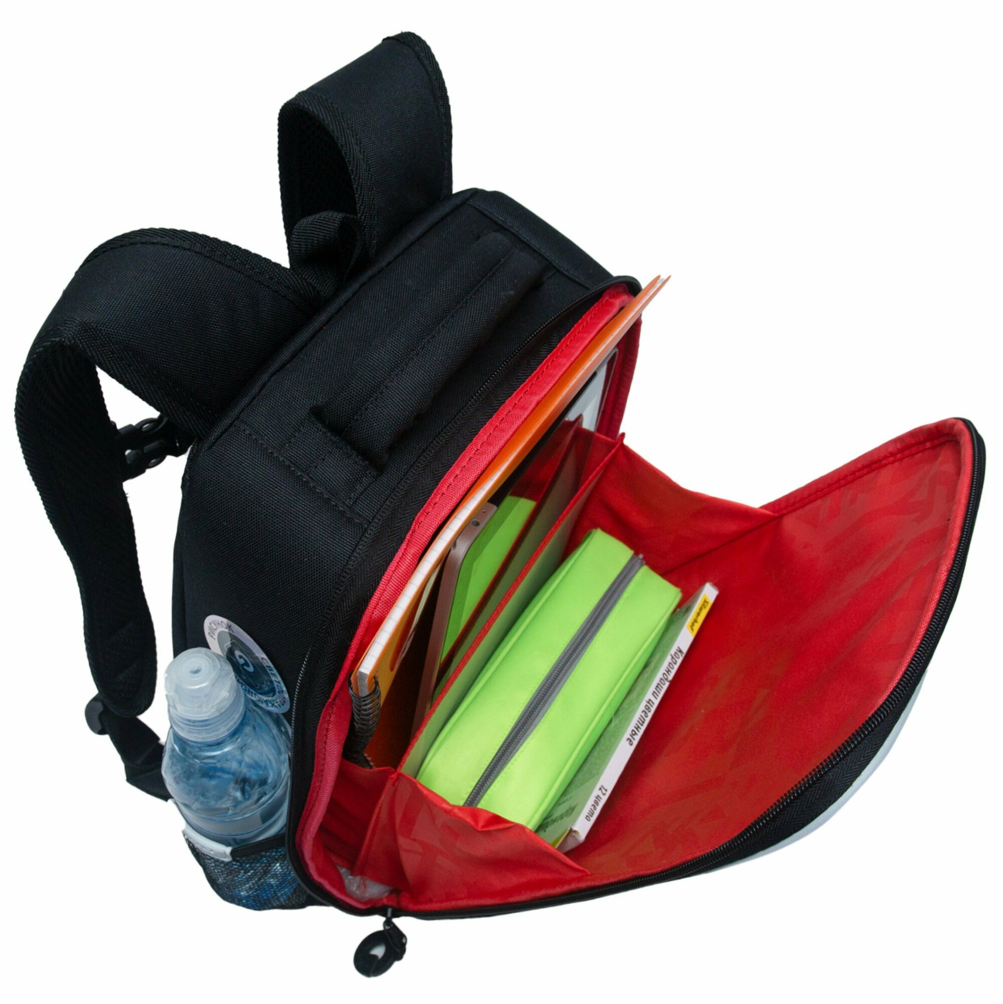 Школьный рюкзак с эргономичной спинкой GRIZZLY RU-436-2/1 черный - красный, 2 отделения, 832грамм, 47x32x17см