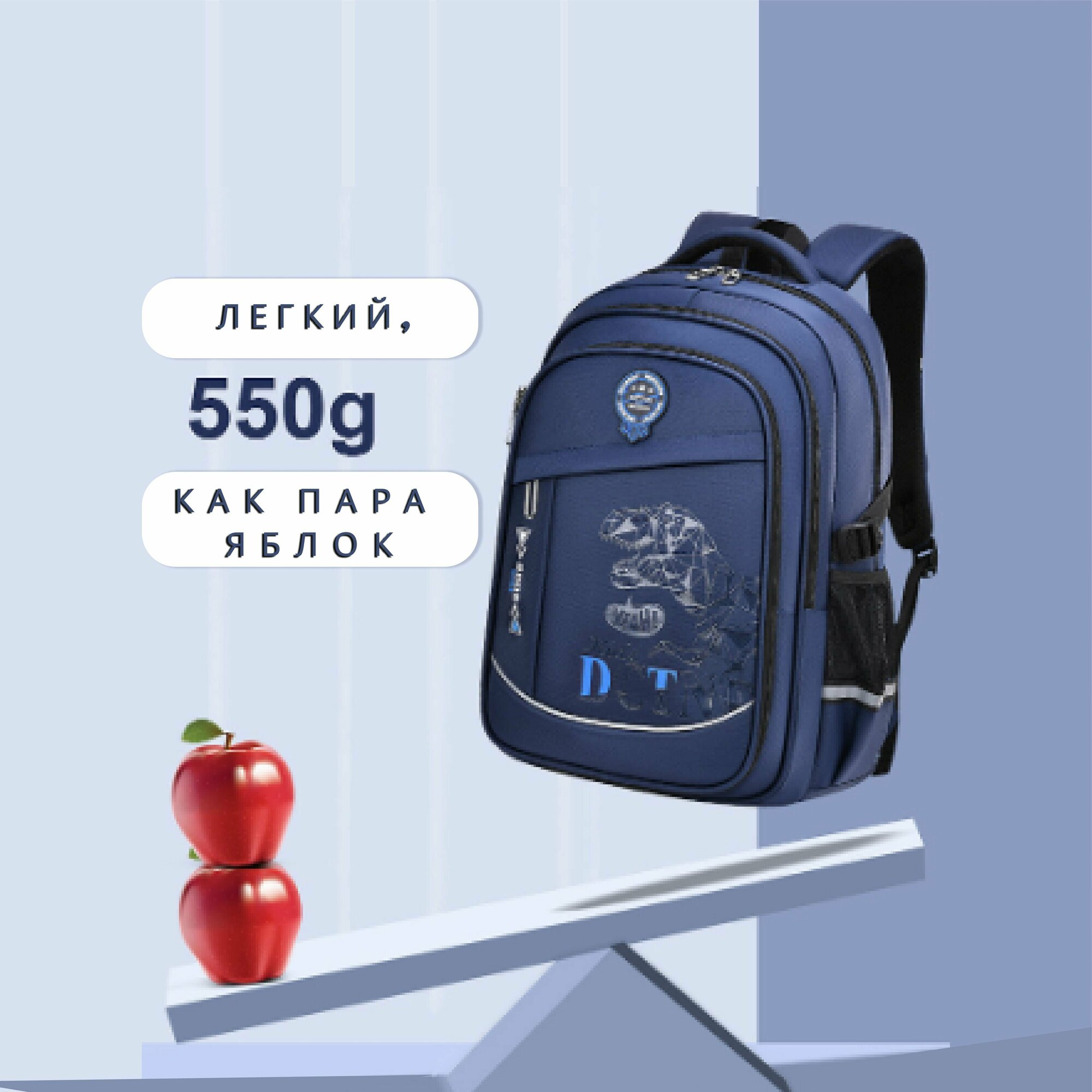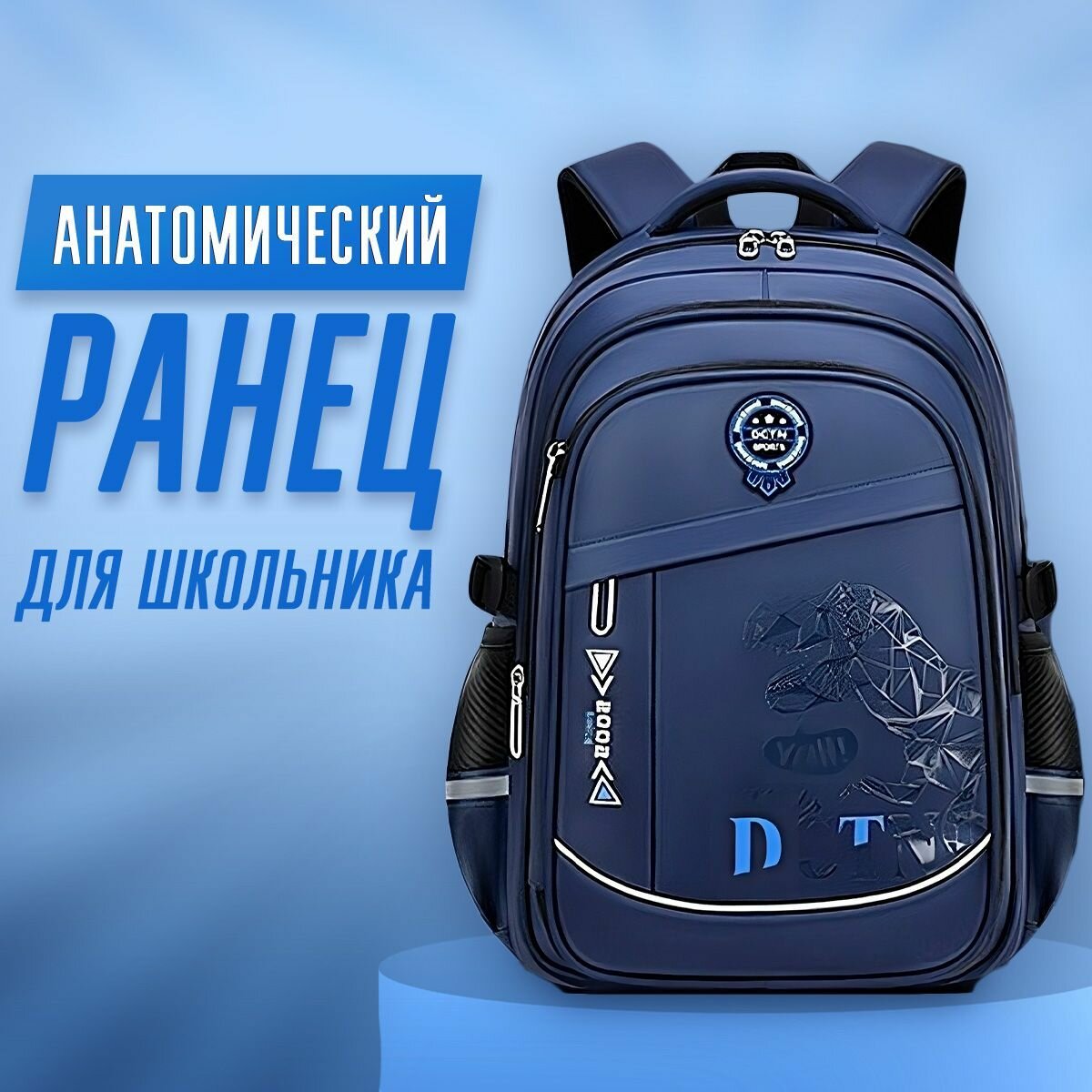 Отзывы на Ранец анатомический для школьника, рюкзак, портфель для первоклассника, цвет синий с динозавром с синими буквами, 20-35 л