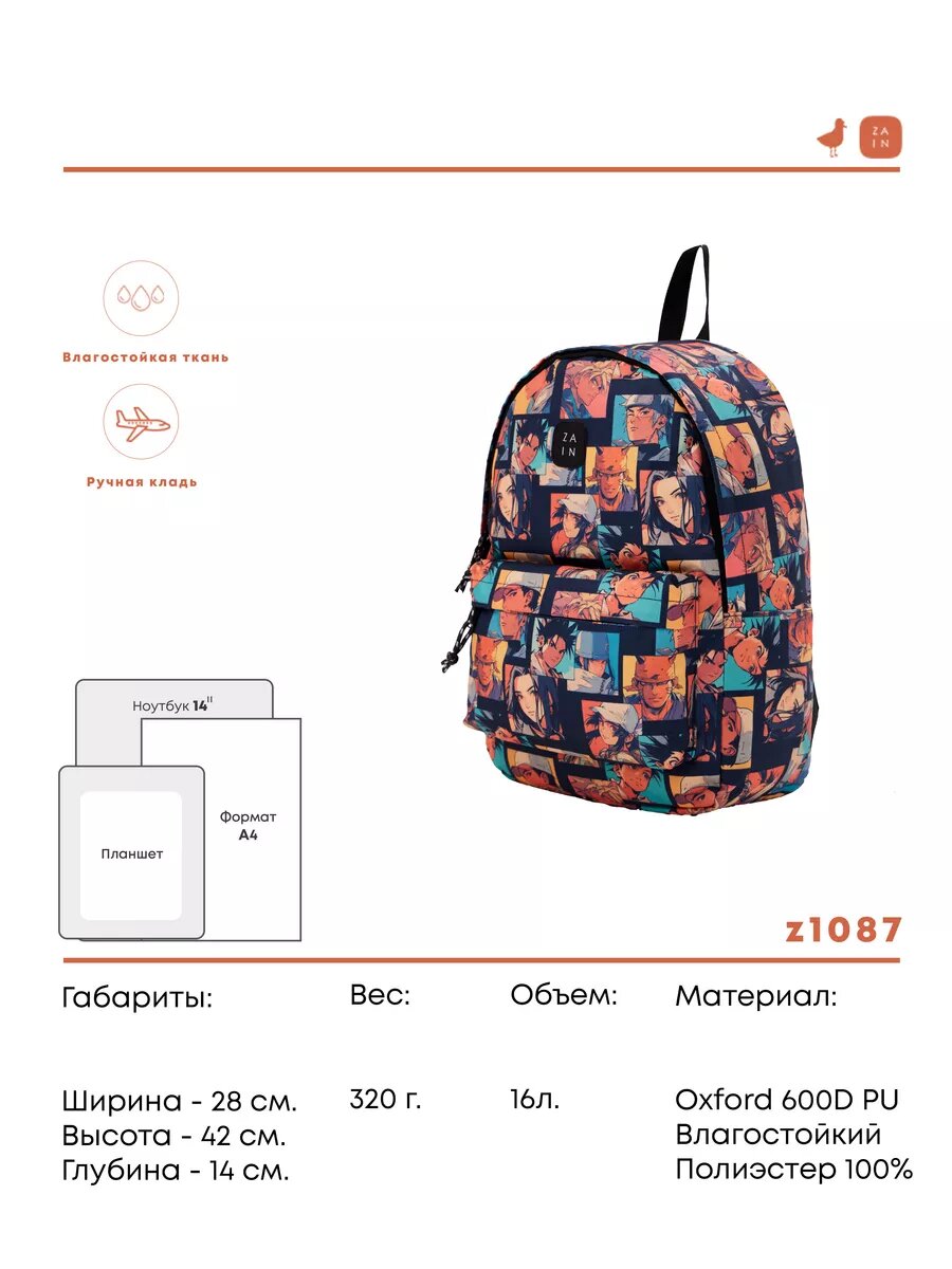 Рюкзак женский Zain школьный для девочки, мальчика, аниме информация: