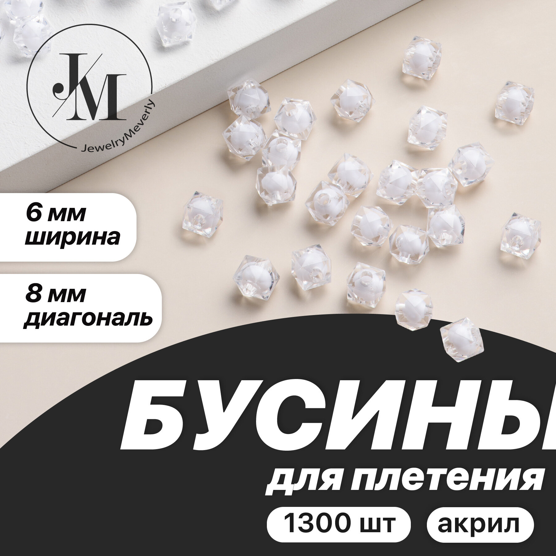 Бусины для рукоделия, плетения сумок JewelryMeverly, набор 8 мм, 1300 шт, белые информация: