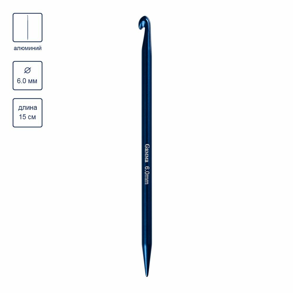 Для вязания Gamma крючок для нукинга HY металл d 6 мм 16.5 см в чехле синий