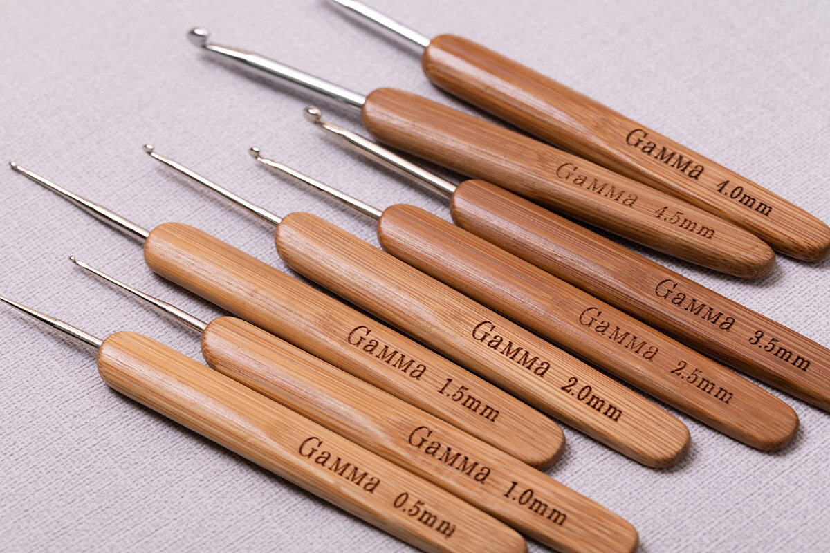 Крючки для вязания "Gamma" RHB крючок с бамбуковой ручкой сталь бамбук d 0.5 мм 13.5 см в блистере . 300 ₽