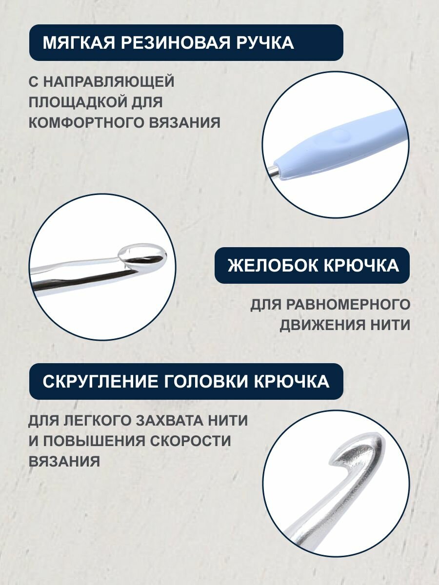 Крючок для вязания с резиновой ручкой и выемкой для пальца, диаметр 5 мм, длина 16,2 см, Hobby&Pro 183 ₽