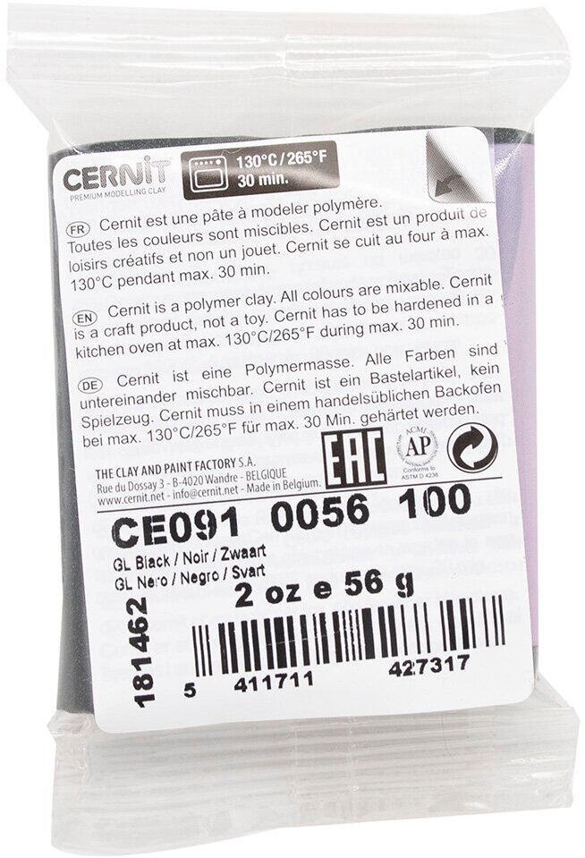 Пластика полимерная запекаемая 'Cernit № 1' 56-62 г (100 черный) информация: