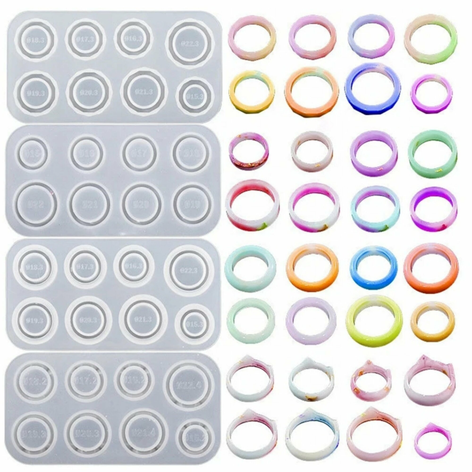 10 цен на Молд для колец набор 4шт / Силиконовая форма для эпоксидной смолы для изготовления аксессуаров