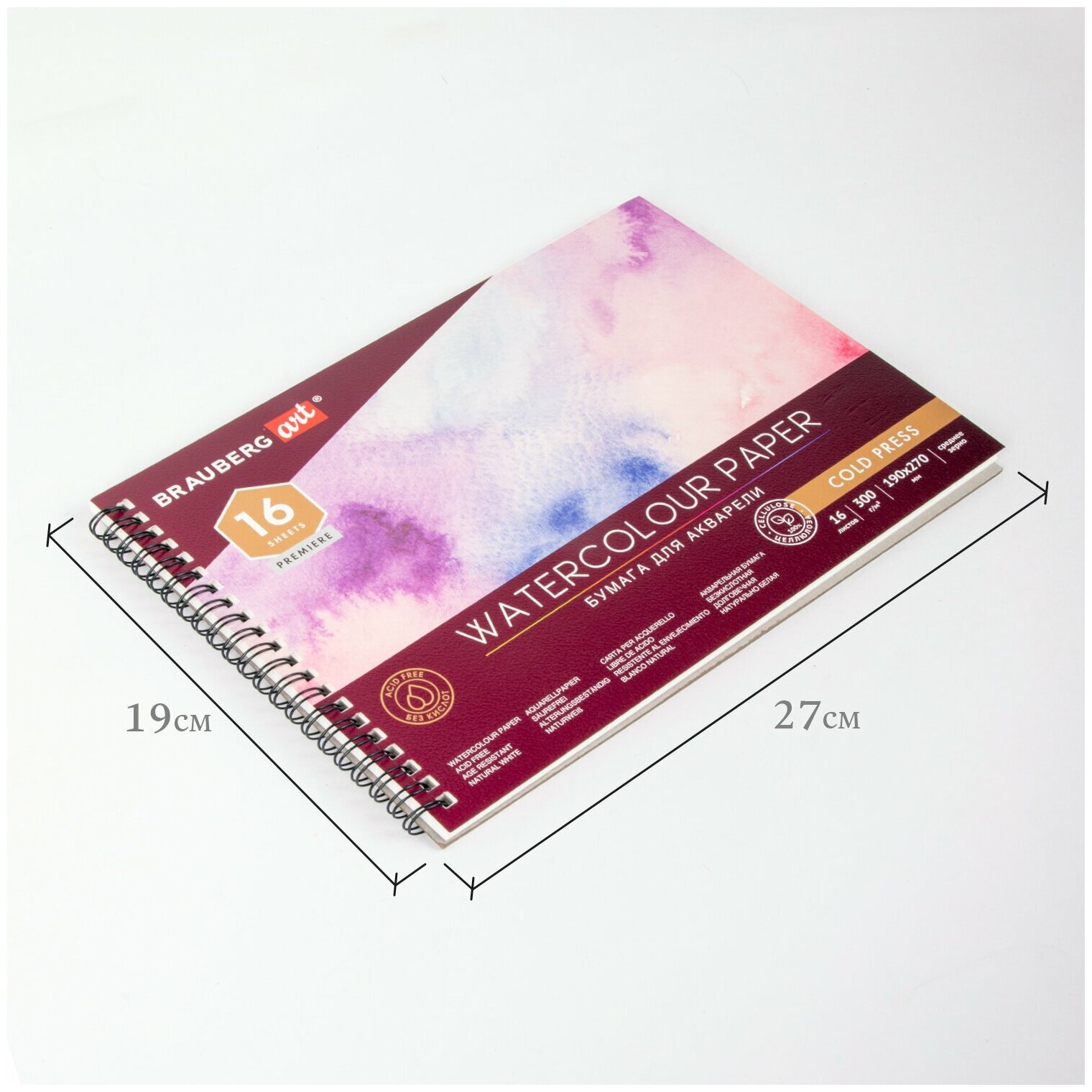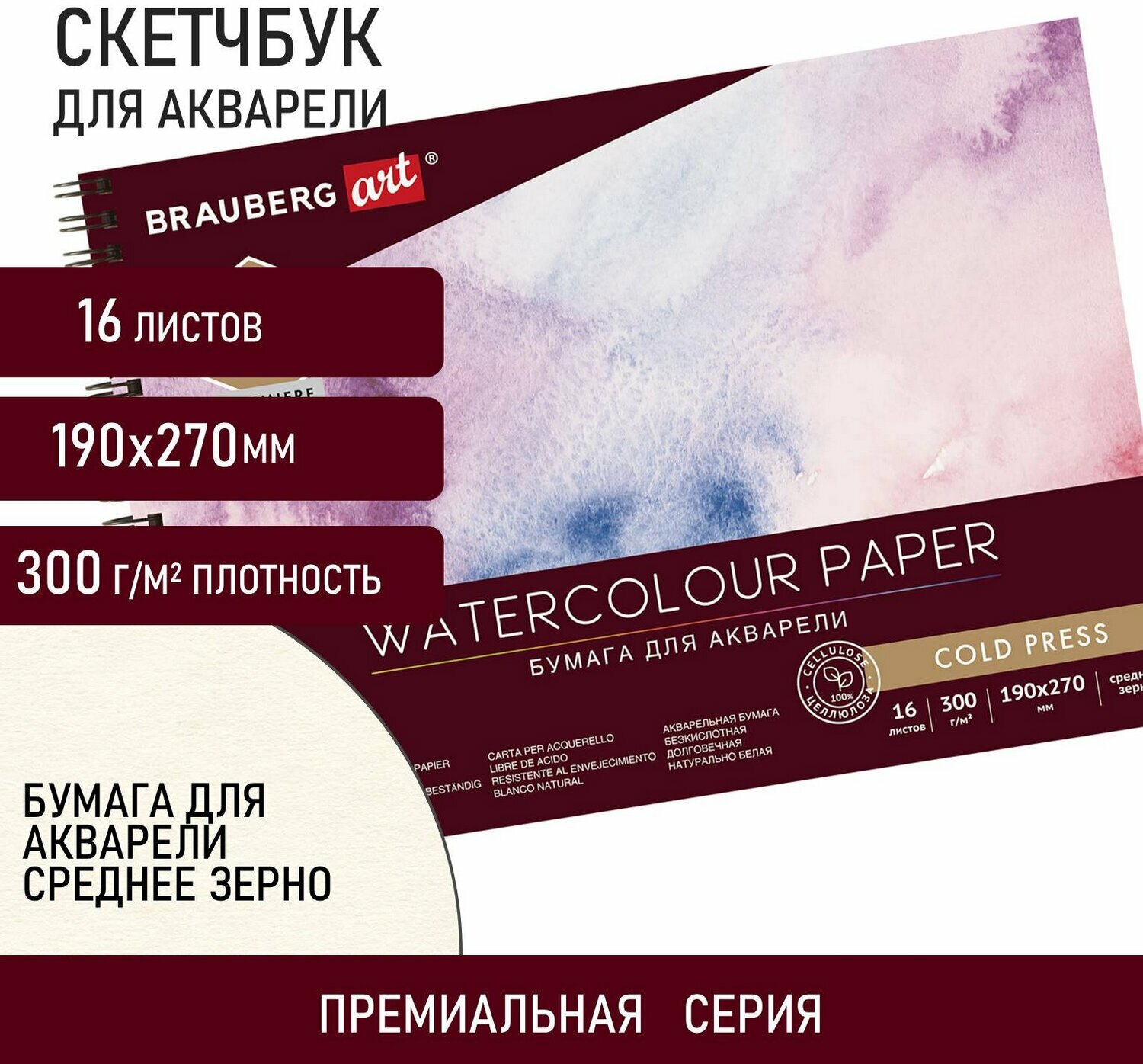 Альбом для рисования для акварели, бумага 300 г/м2, 190х270 мм, среднее зерно, 16 листов, гребень, Brauberg Art Premiere информация: