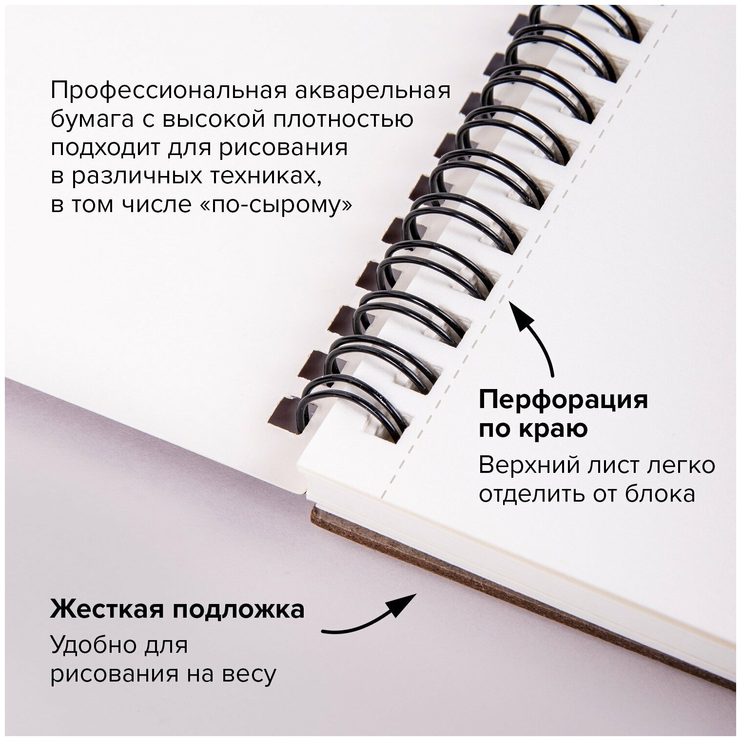 10 цен на Альбом для рисования для акварели, бумага 300 г/м2, 190х270 мм, среднее зерно, 16 листов, гребень, Brauberg Art Premiere