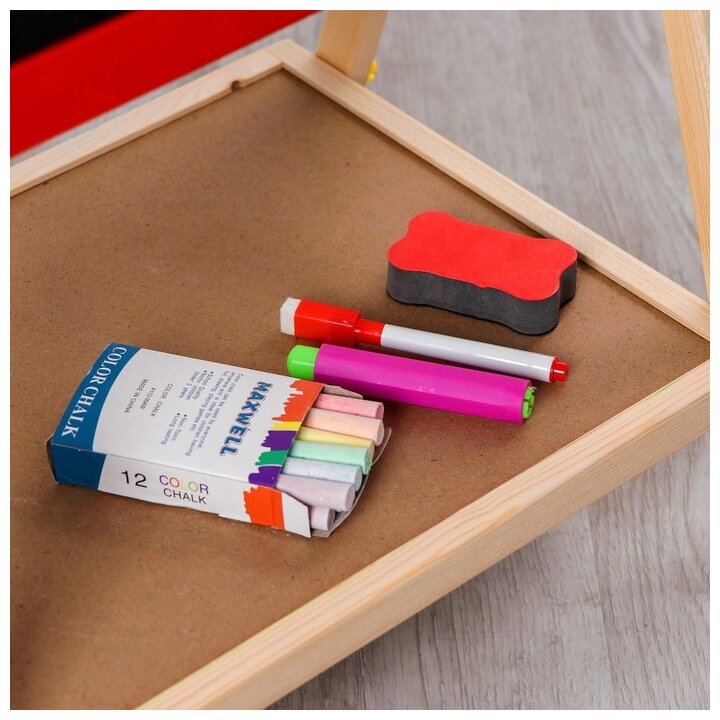 | В комплект входит | двухсторонний мольберт, губка, маркеры, мел |