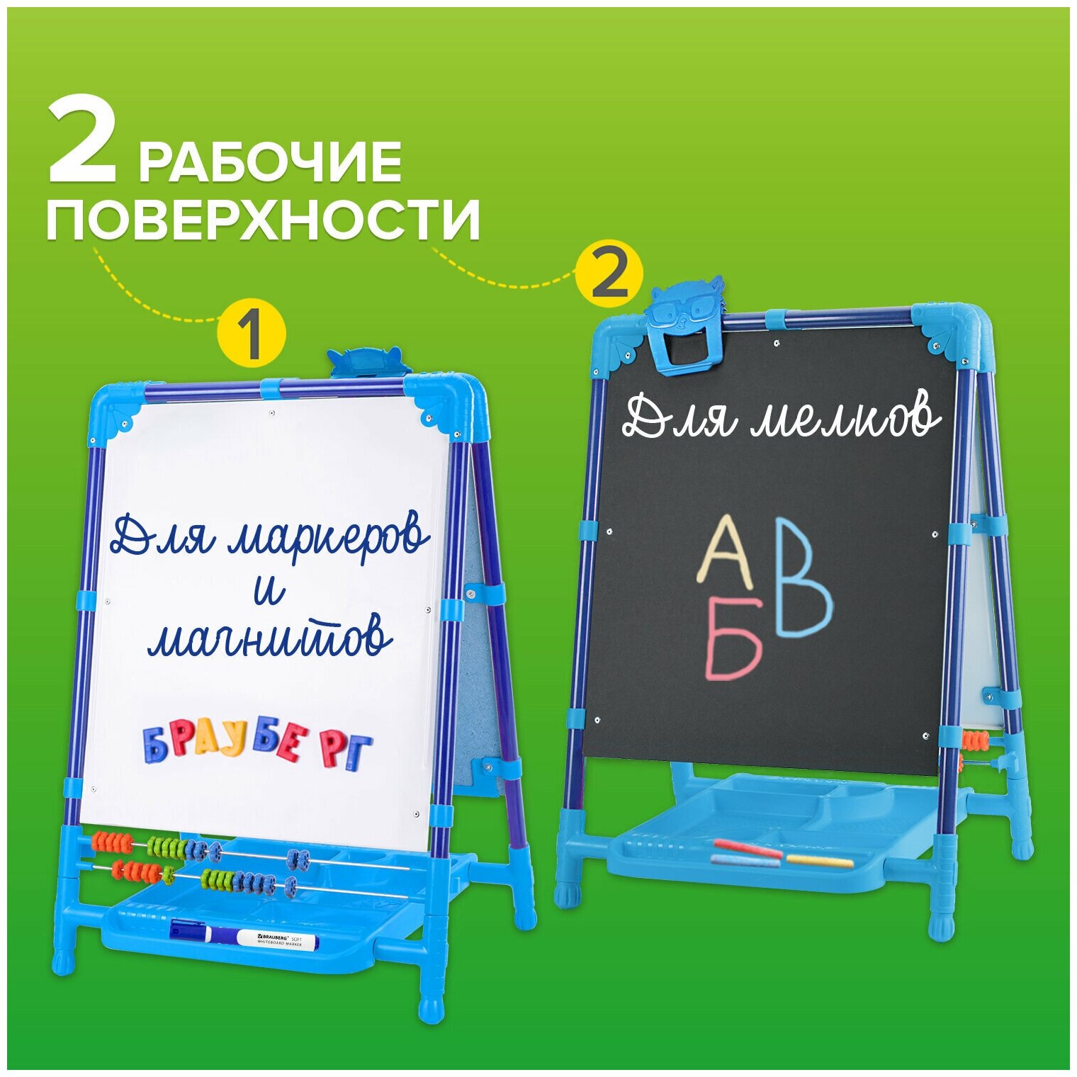 Мольберт для рисования детский напольный растущий двухсторонний для мела / магнитно-маркерный 53х46 см, Brauberg Nika Kids, синий, 238049 информация: