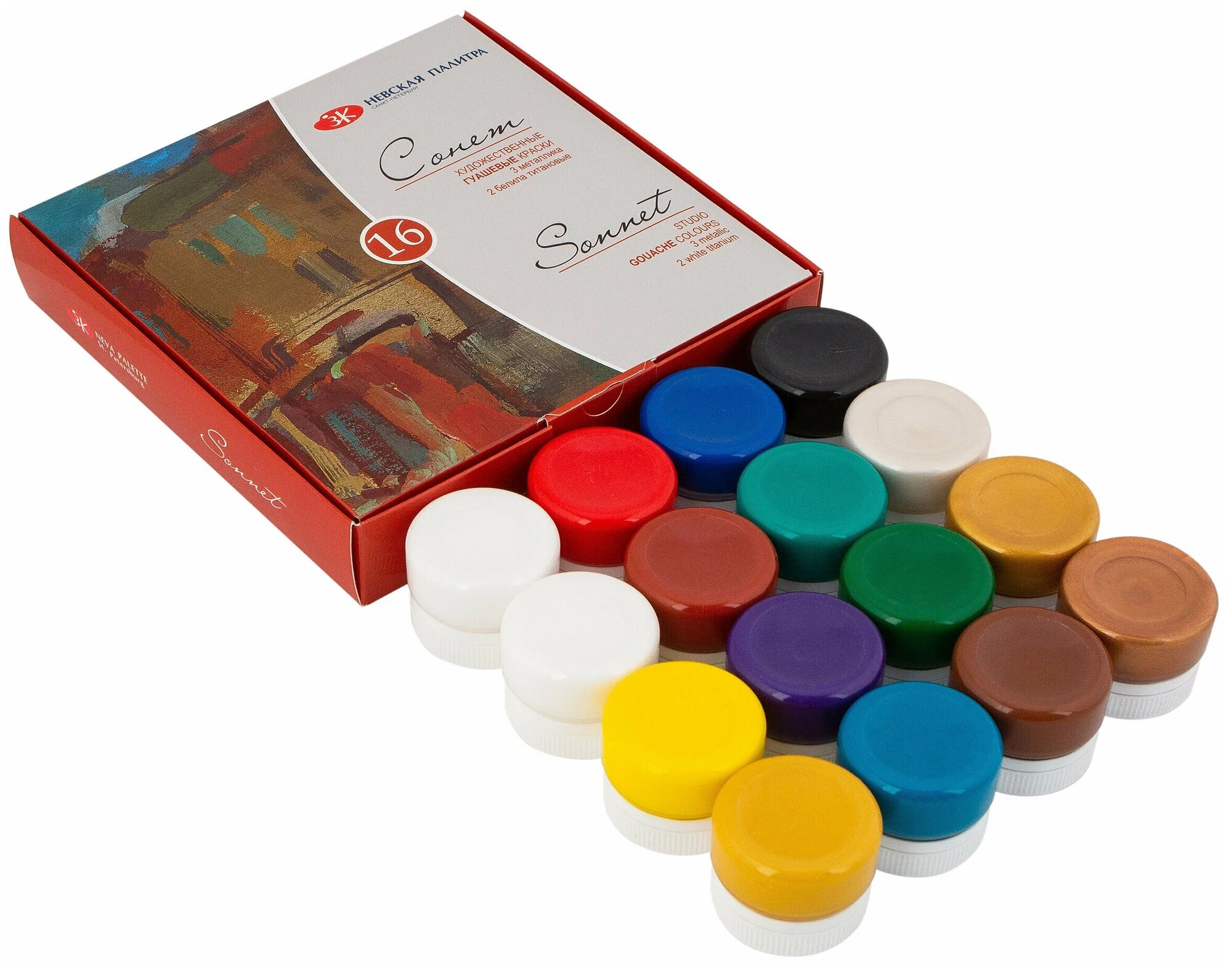 Гуашь художественная 16 цветов х 20 мл ЗХК "Сонет" Завод художественных красок Невская палитра . информация: