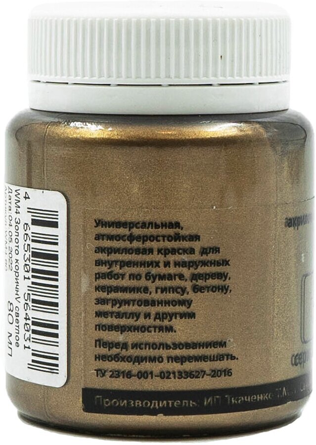 Краска акриловая металлик для рисования WizzArt ArtMetall, 80 мл (золото коричневое светлое) информация:
