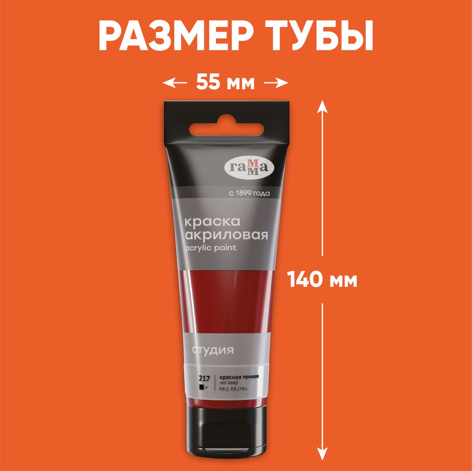 Гамма Акриловая краска Студия, пластиковая туба (280220), 75 мл, краплак красный