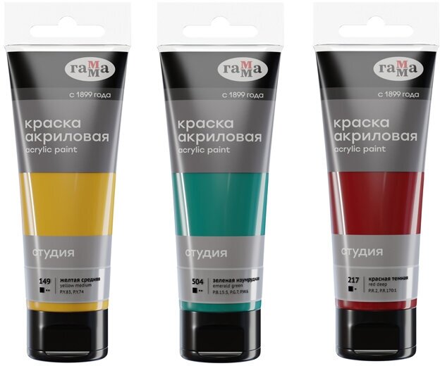 Краска акриловая художественная Гамма "Студия", зеленая фц 3 тубы по 75 мл 540 ₽
